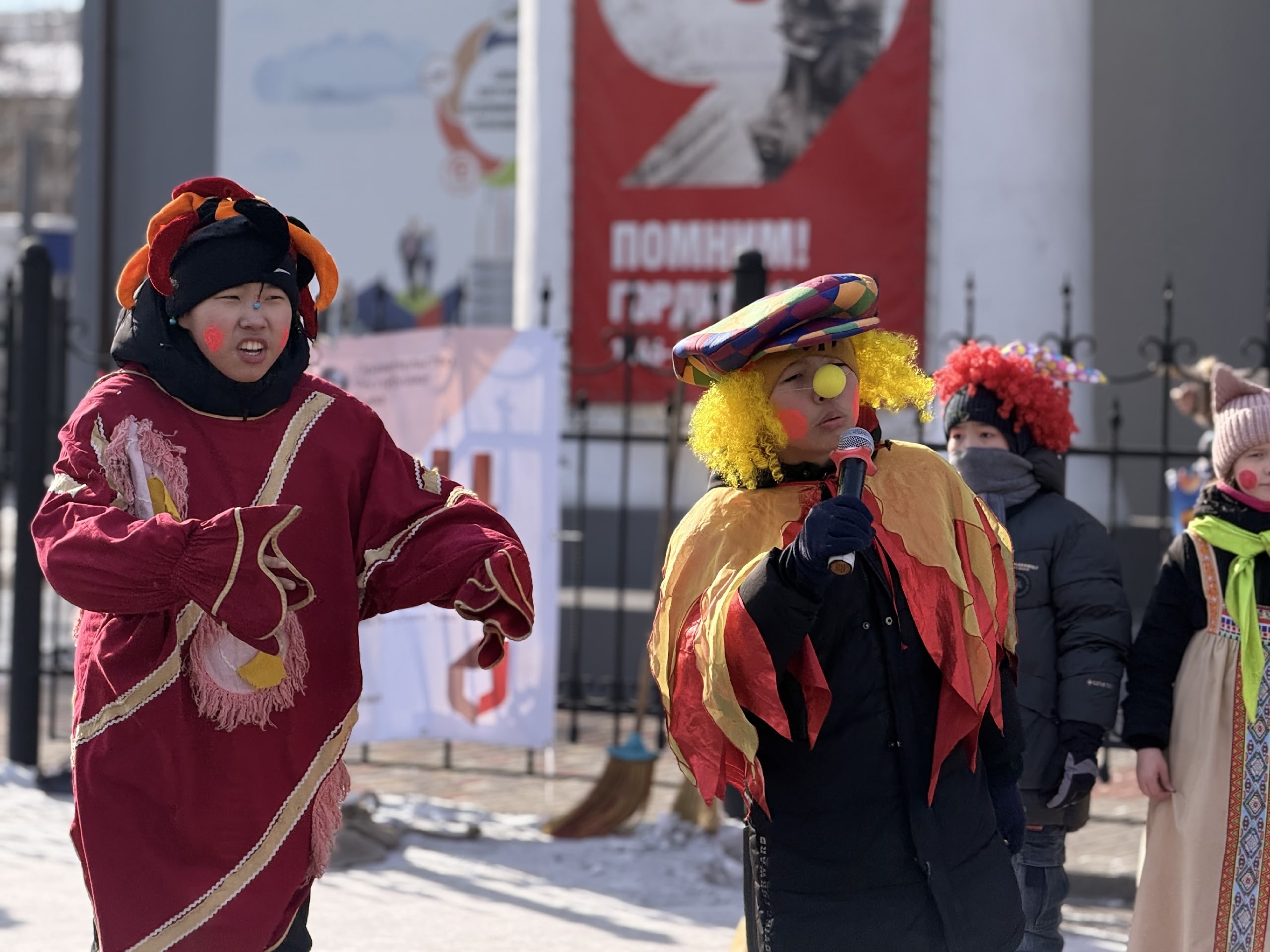 Чалыы көрүкчү театрының артистери театржыткан кыска көргүзүг болгаш улуг-бичии көрүкчүлер аразынга “Хөгжүмнүг горох”, “Хөглүг скакалка” дээш өске-даа каткы-хөглүг оюннар, мөөрейлерни эрттиргеш, байырланчыг шинчи киирген. Ном саңының ажылдакчыларының солун викториналарындан Масленица байырлалының дугайында ооң киржикчилери билип алганнар. Тиилекчилер чигирзиг белектер болгаш блиннерни шаңналга алгылаан-даа болза, кол-ла чүве чоннуң сагыш-сеткили өөрүшкү долуп, хей-аът көдүрлүүшкүннүг байырлалды демдеглээни болган.